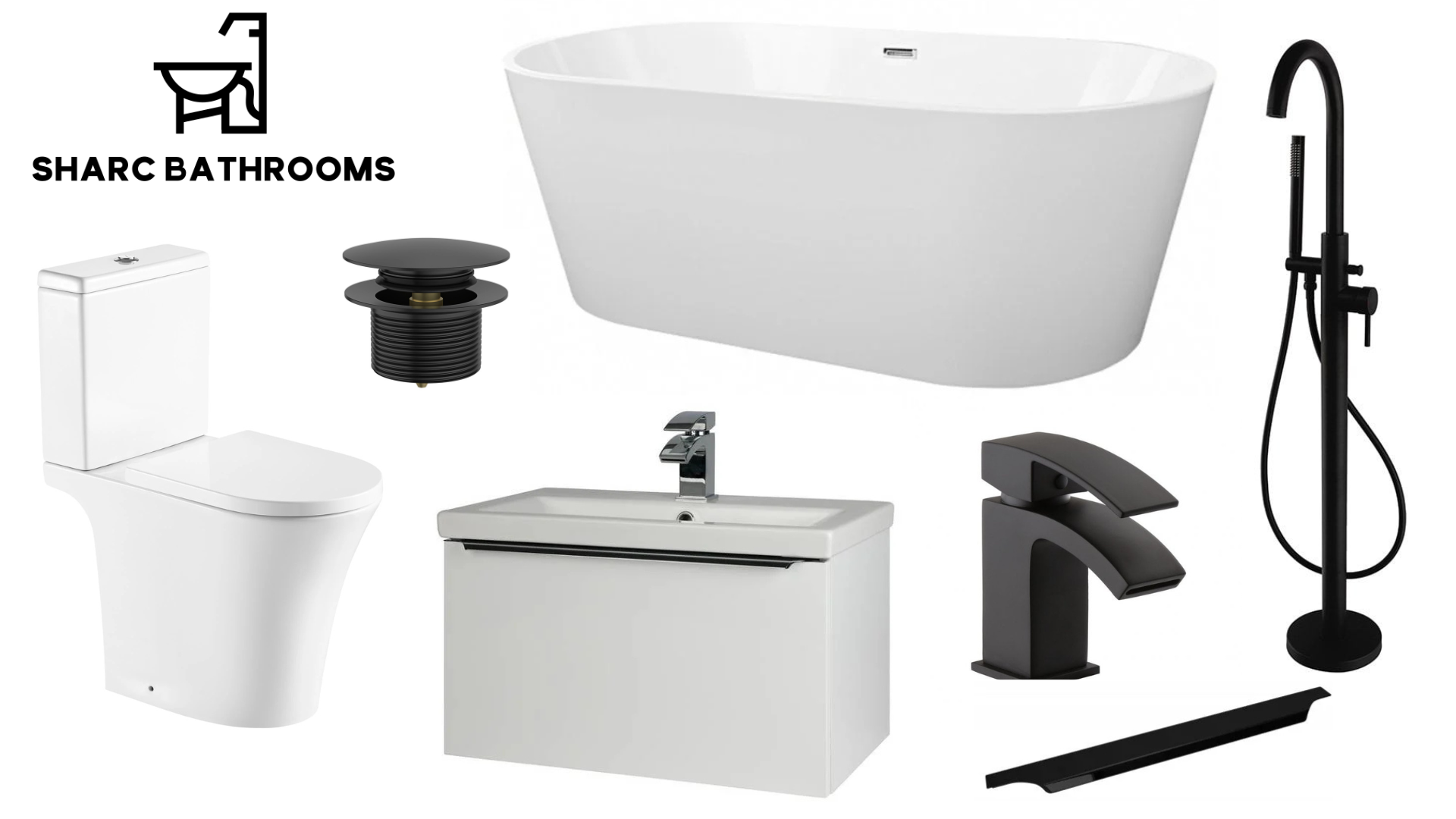 This bundle features some of our most popular bathroom products, all offered at a great price. From the stylish freestanding bath and modern black shower mixer to the sleek Kore sink unit with matching black handle and tap, plus a durable white ceramic toilet each piece combines quality, style, and functionality. Perfect for creating a contemporary bathroom that looks great and fits your budget.