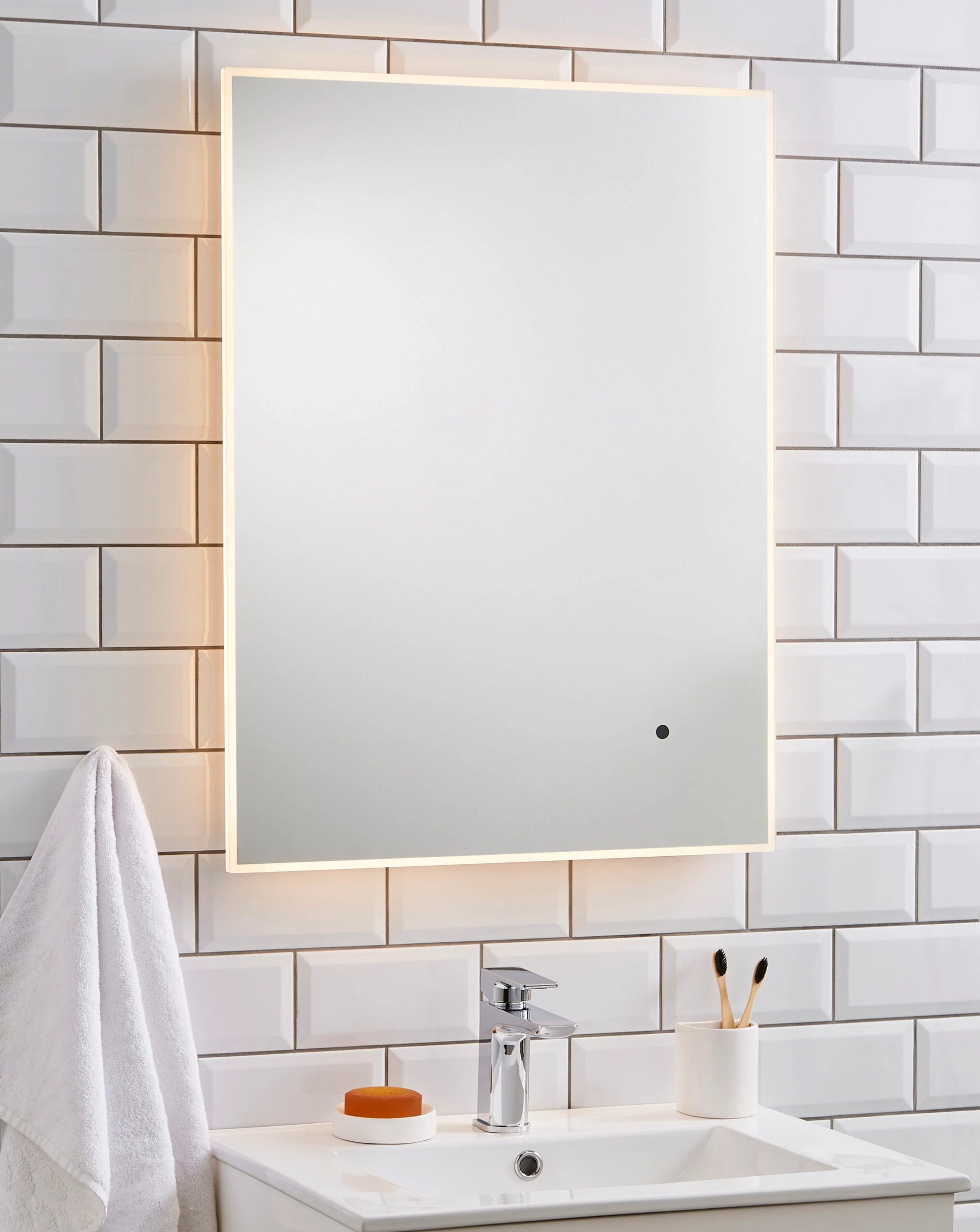 A sleek and modern LED mirror with a chrome finish, perfect for upgrading any bathroom. It features 3-tone ambient lighting (cool, warm, and neutral), an anti-fog demister, and a sensor switch for touch-free operation. This stylish mirror is wall-mounted and easy to install, with two size options to suit different spaces.